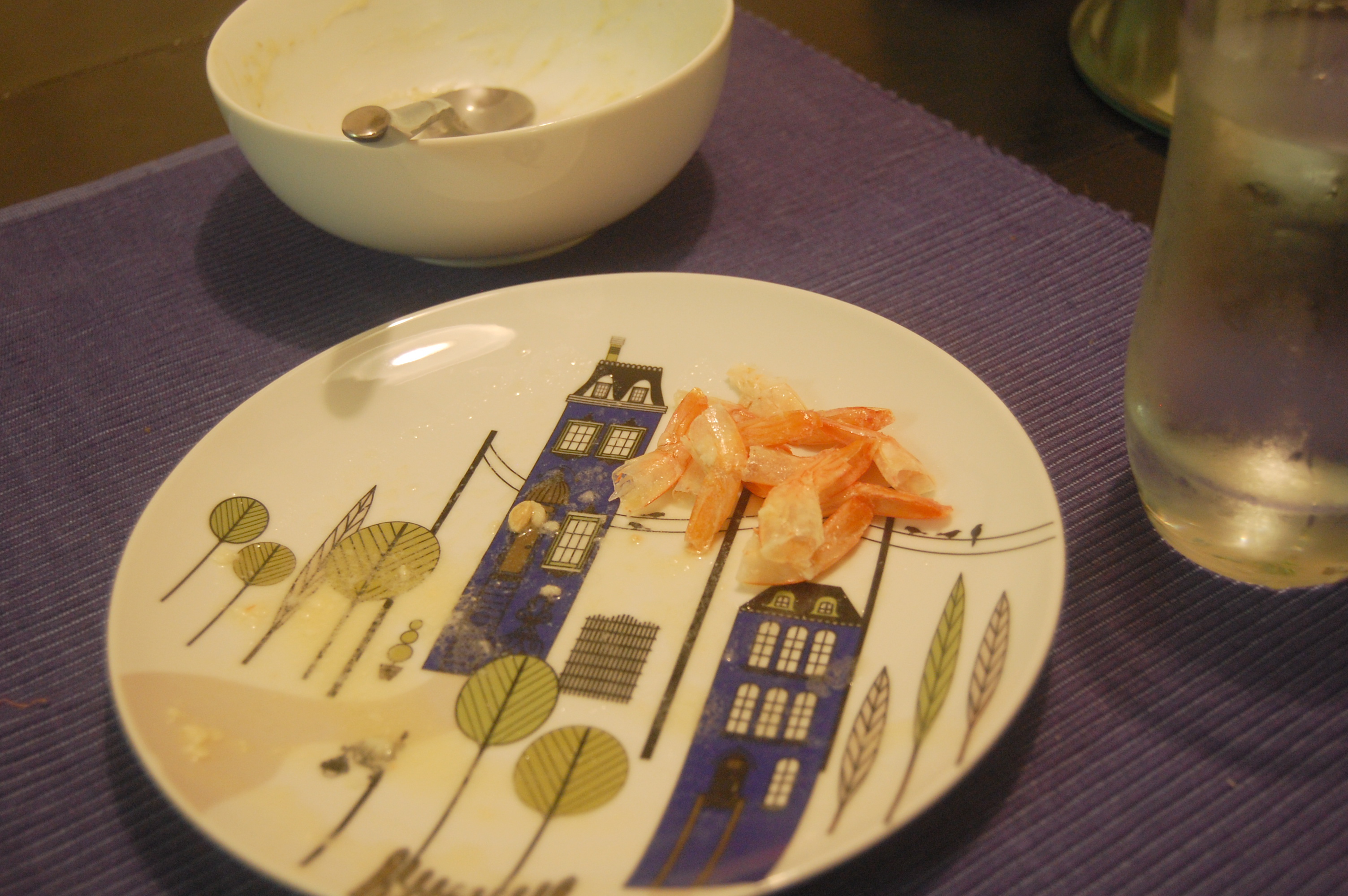 So basically, I was looking forward to this meal for a long time. All the ingredients were on sale, and the chowder actually lasted through several meals. It got a resounding thumbs-up from both Stephen and me. The shrimp was quick and easy, but I made the chowder the night before so I could just stick it in the microwave when I got home from work.