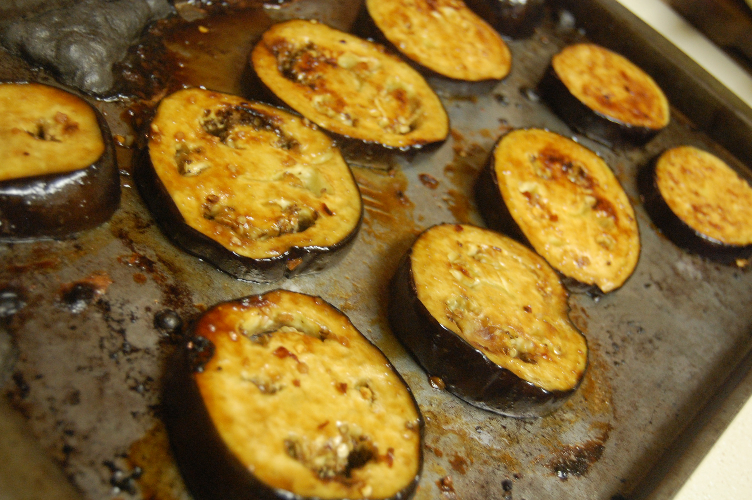 - Brush the mixture liberally over both sides of each slice of eggplant.