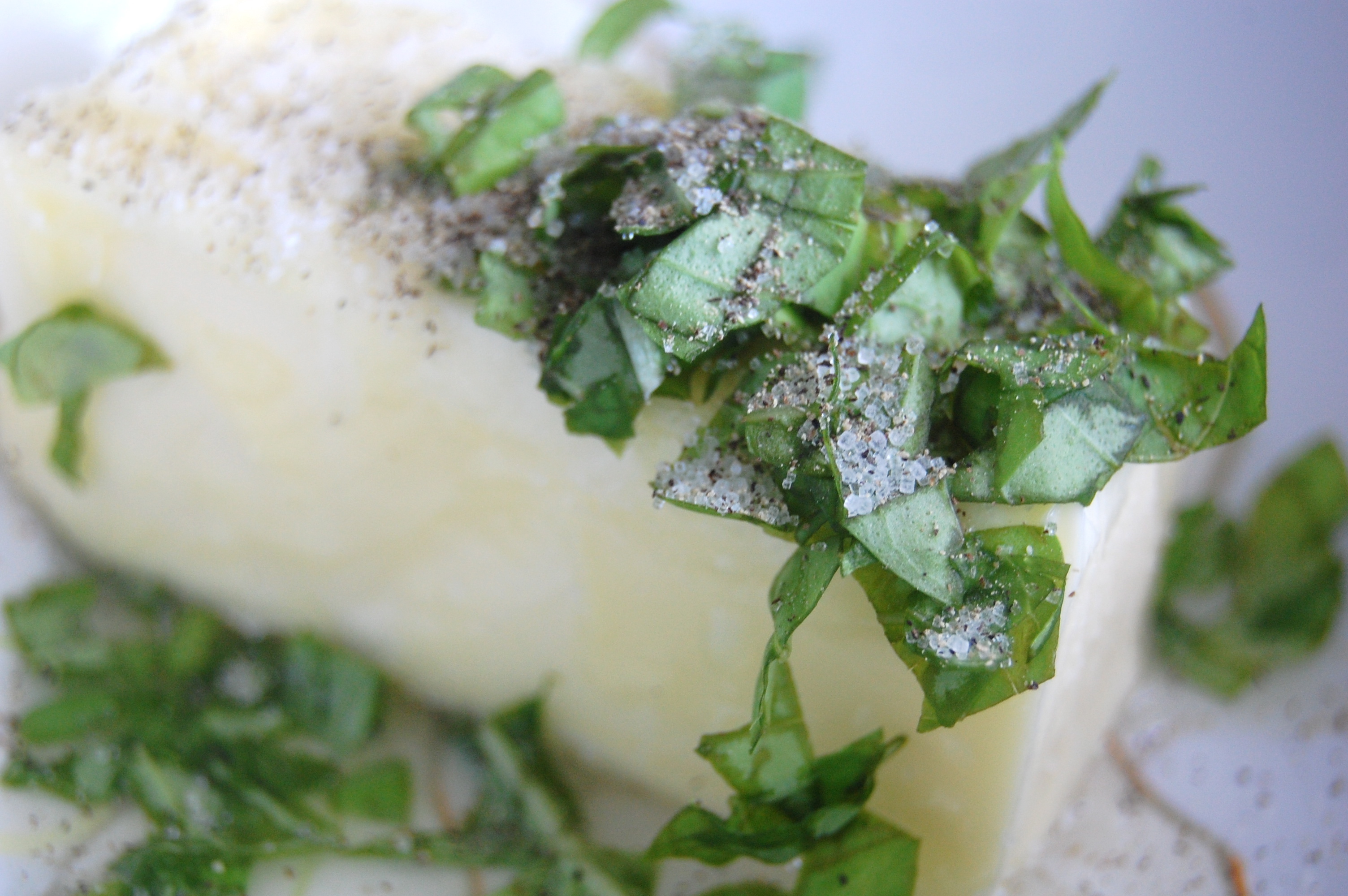- 1/2 Tbs chopped fresh basil (I used 4 leaves from the basil plant I’m growing in a pot. You could taste the freshness!)