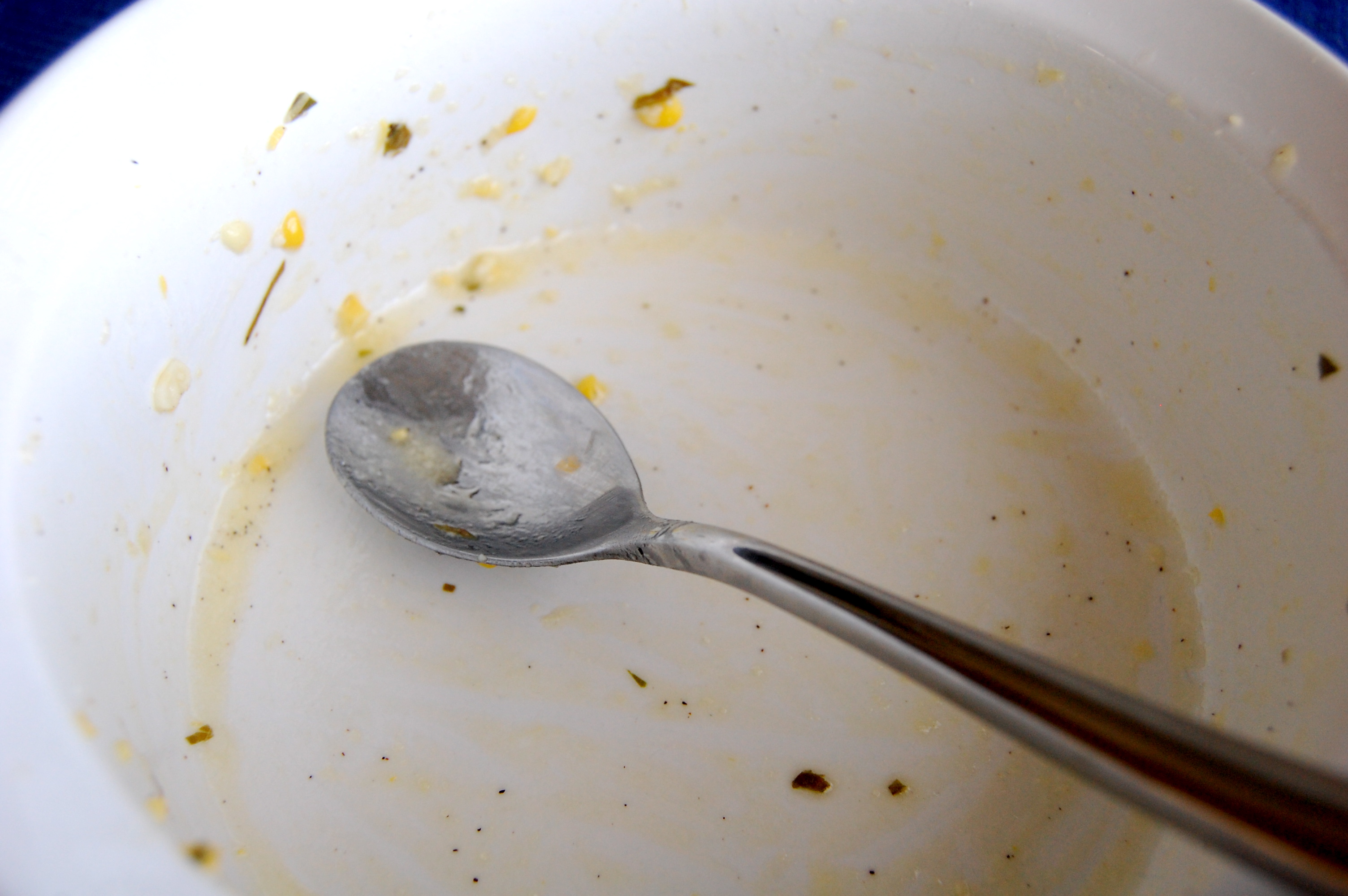 … and that’s where this photo saga ends. We were so hungry by the time it was ready that I didn’t even think to take a photo. Oops. Buttery corn goodness with flecks of beautiful green basil. Use your imagination.