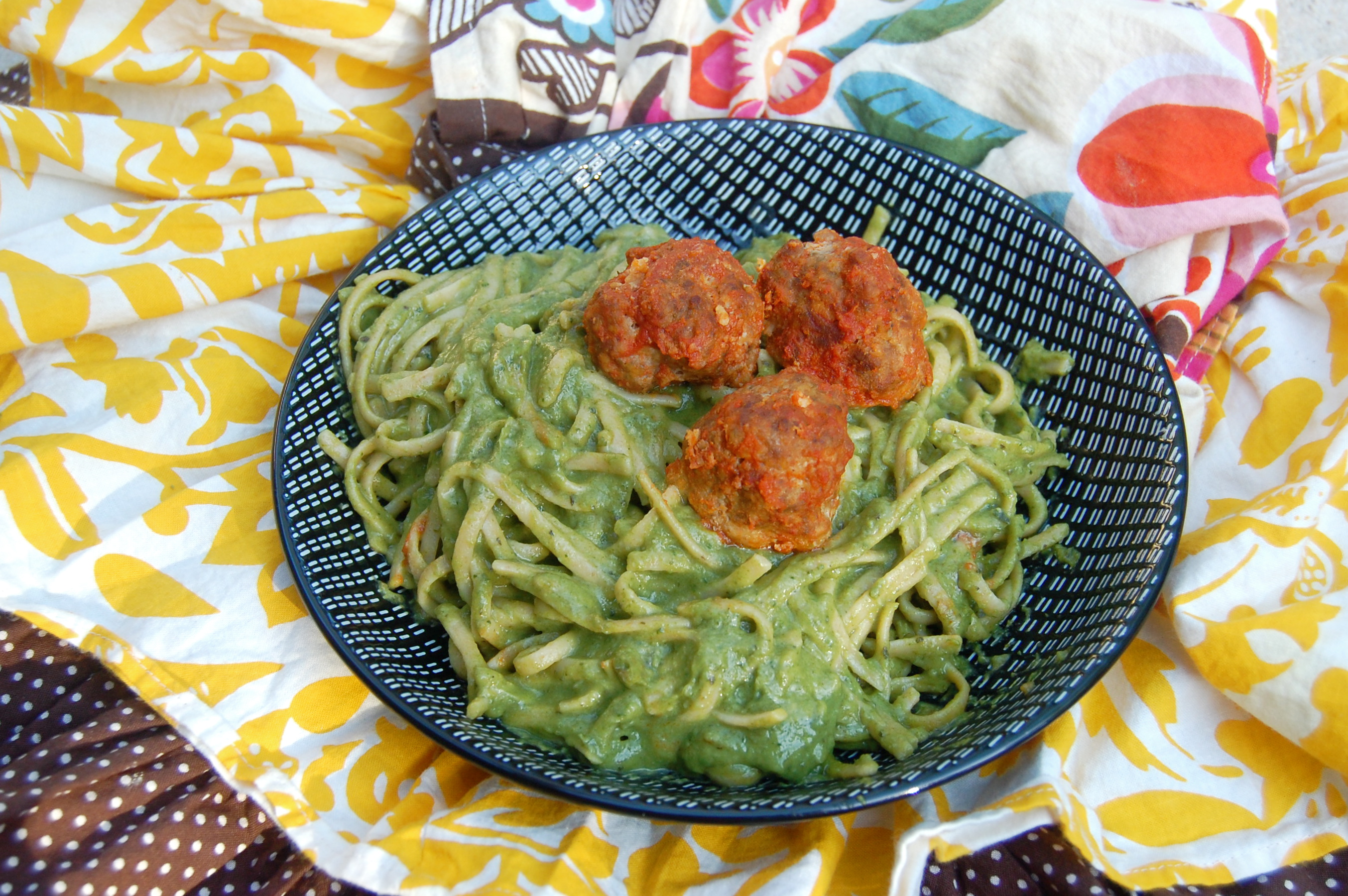 When I make this pasta, I don’t bother making a vegetable dish on the side. I feel like I’m being OH, SO BAD, but with all the spinach, onion, garlic and avocado involved, you don’t even need it.