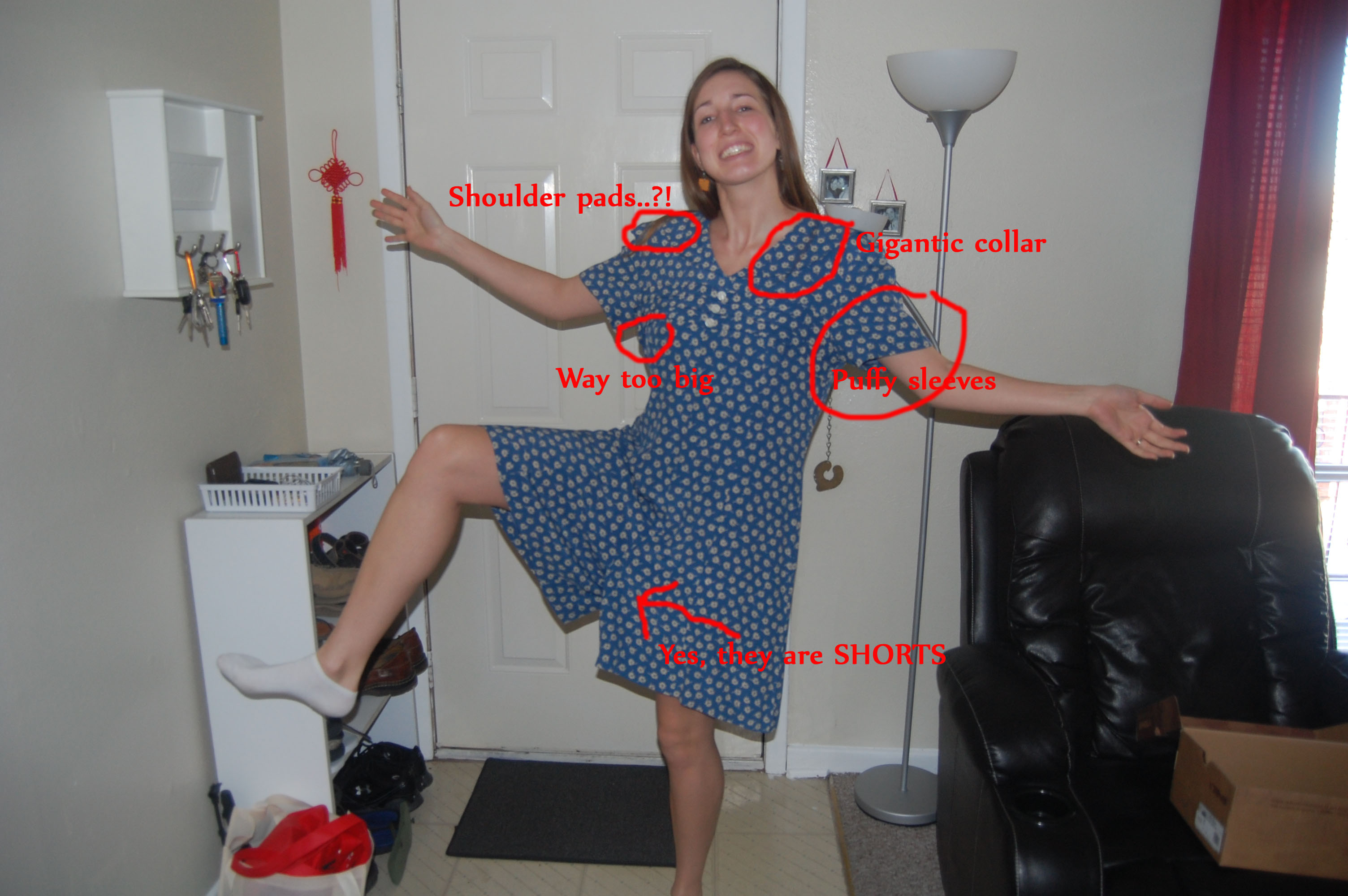 My good friend Sarah (Pieceful Joy blog) showed me this blog called New Dress a Day. I used to occasionally reconstruct clothing, but I was inspired to go do it again. I hit the local thrift store with $3, and this is what happened.
