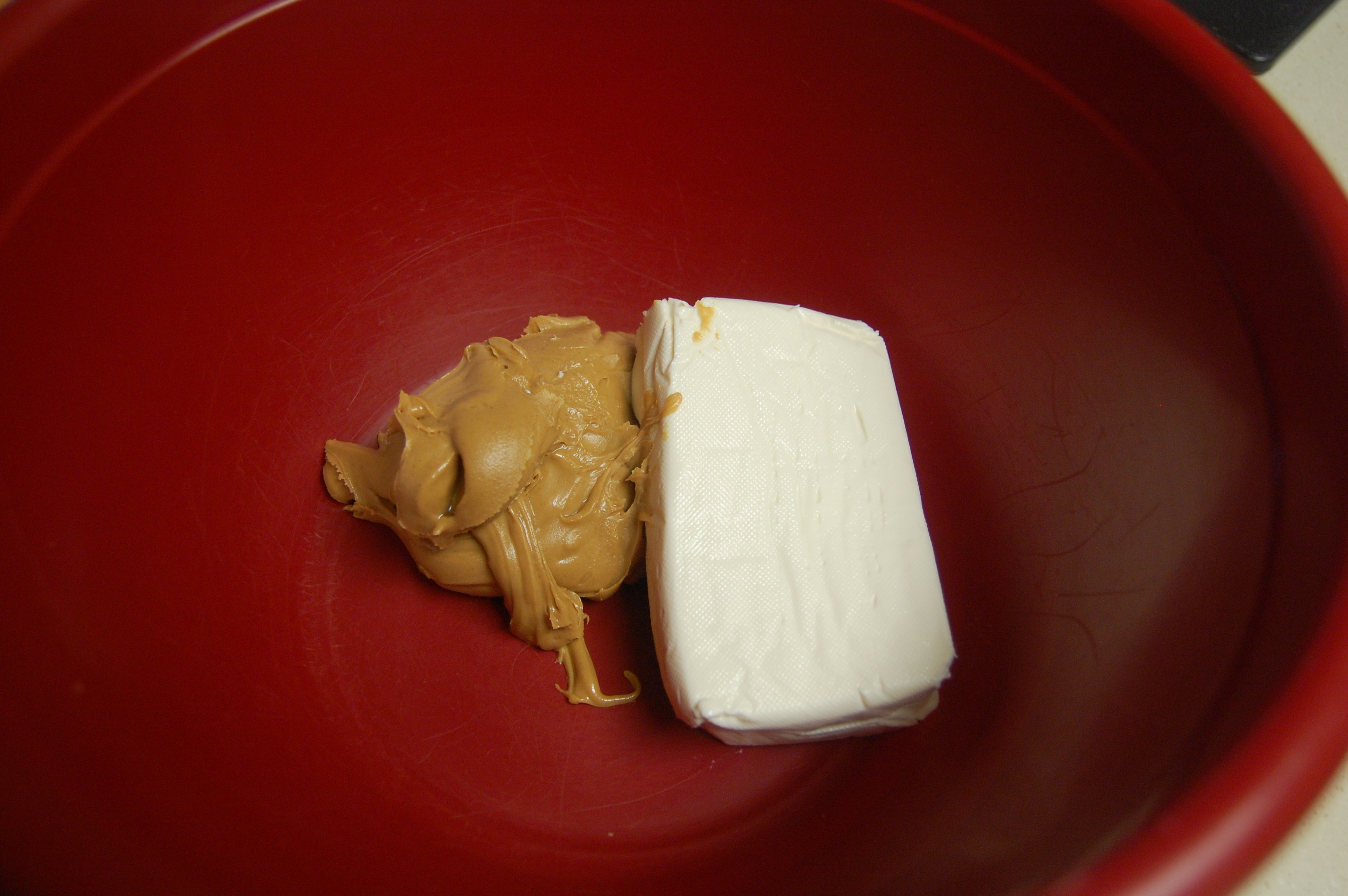 - For the filling, beat the cream cheese and peanut butter in a large mixing bowl until smooth. Add the 1 cup powdered sugar, milk and vanilla, beating until combined.