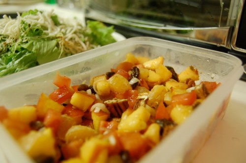 - 1-2 Tbs brown sugar (depending on how sweet your peaches are. Yes, I advocate taste-testing your peaches as you slice them. For safety purposes. And research. And posterity. And stuff. Basically, you need to end up with approximately two sliced peaches. If you started out with three, it’s none of my beeswax.)