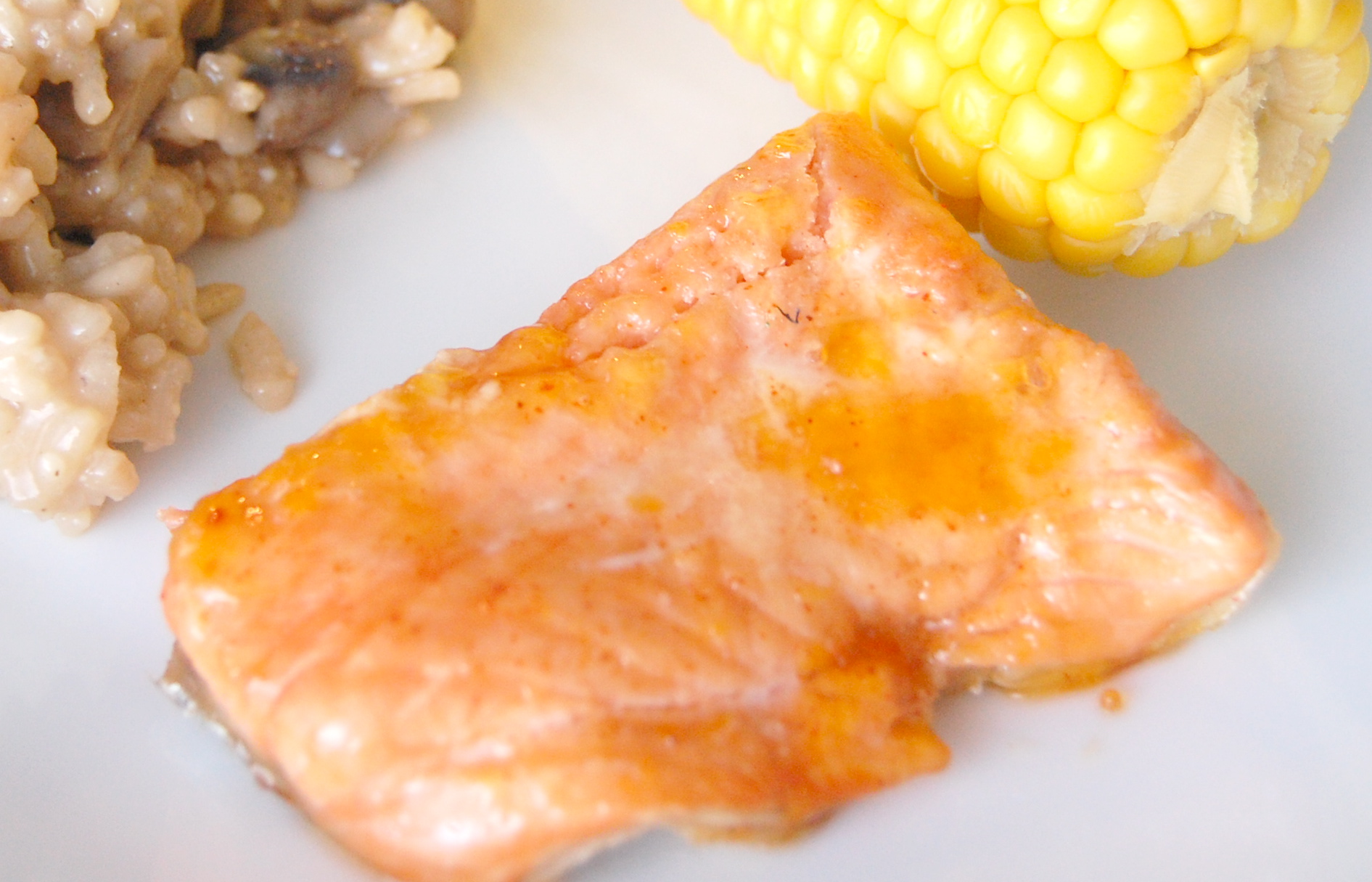 - To tent-bake, place the salmon on a piece tinfoil about the size of a dinner plate. Sprinkle on the cayenne pepper, then spread the apricot preserves over the top, and drizzle with honey.